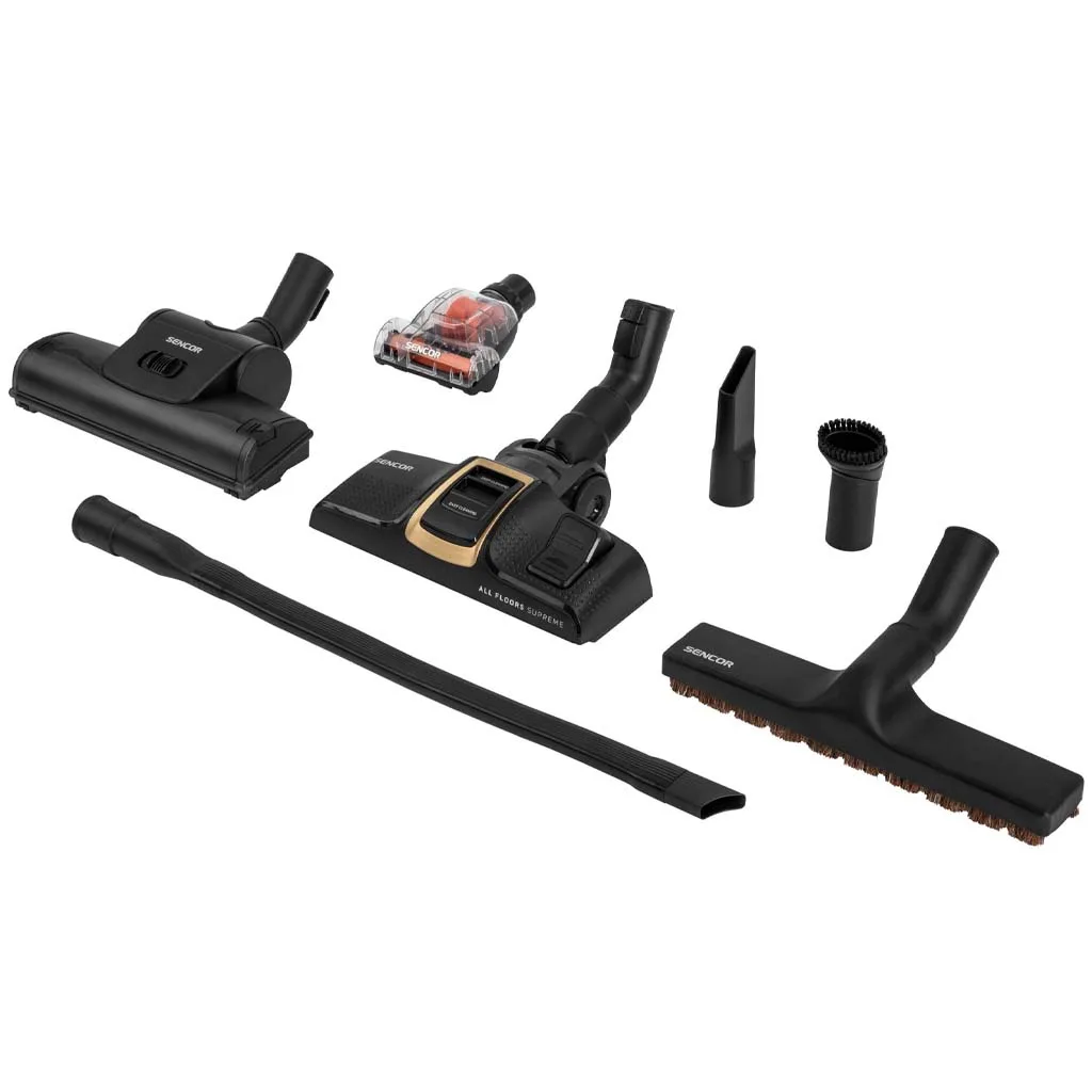 جاروبرقی سنکور مدل SVC 9300 معمولاً همراه با سریها و برسهای مختلف عرضه میشود. این لوازم جانبی امکان تمیز کردن سطوح متفاوت را فراهم میکنند: